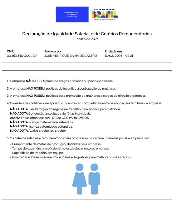 Mais do que atender a uma exigência legal, a divulgação deste relatório reforça a cultura de respeito, ética e inclusão que guia nossas decisões. Continuamos trabalhando para evoluir constantemente, promovendo um ambiente de trabalho cada vez mais justo e equilibrado para todas as pessoas.